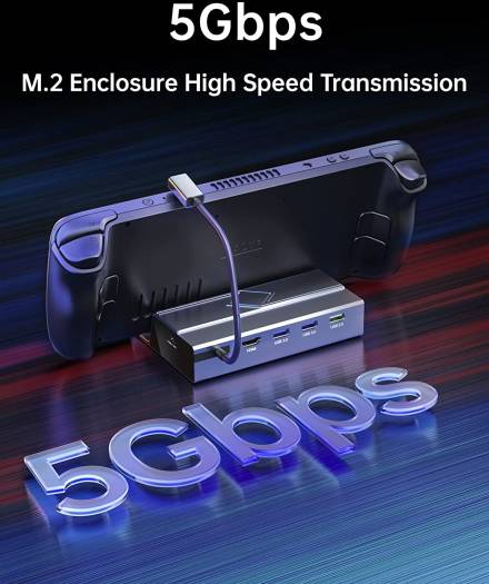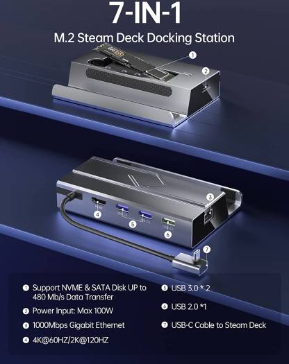 IMPORTANT NOTE: When using this M.2 Steam Deck Dock, a charger adapter at least 65W is required to ensure full speed charging of the dock and normal operation of the m.2 steam deck dock. If the charger with less than 65W is used, steam deck will indicate that the charging speed is slow, which will consume the battery power of the steam deck. UPTOHIGH 7 in 1 STEAM DECK DOCK – We know you’ve been looking for a Docking Station for your Steam Deck. Then, UPTOHIGH came, with SSD port, HDMI 4K@60Hz output, Gigabit Ethernet input, two USB 3.0 ports, one USB 2.0 port and one USB-C charging port. Get fun from Steam Deck in new ways from now. M.2 DOCKING STATION for STEAM DECK-What if you like too many games, but the capacity of the steam deck does not allow you to install them all UPTOHIGH provides a perfect solution:UPGRADED 7-in-1 steam deck dock with an M.2 slot. With the help of UPTOHIGH, your steam deck can expand up to 2TB hard disks.(MAX 2TB) CLEAR 4K@60HZ HDMI OUTPUT – UPTOHIGH Steam Deck Dock is designed with 4K@60Hz HDMI 2.0 output. When your steam deck connect with 4K monitor, you will get super clear and smooth visual experience, allowing you to enjoy a visual feast