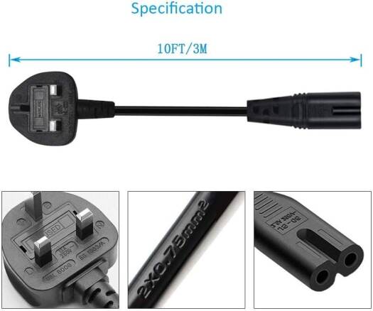 Figure 8 Power Cord – 2 Pin IEC C7 Universal UK Plug Power Cable for PS4 PS5 Xbox Samsung LG Philips Toshiba Sony Sharp Panasonic HP LED Flat TV UK Wall Cable 3M