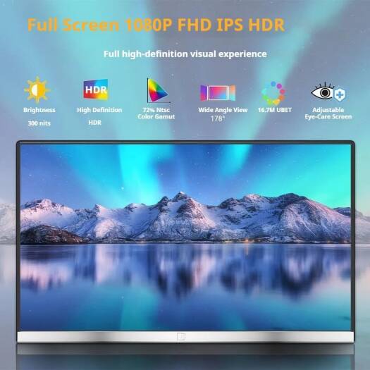 V2COM P4 Portable Monitor, 16″ IPS Display, FHD Resolution, 60Hz Refresh Rate, 1ms Response Time, HDR Technology, 16.7m Color Display, Adjustable Eye-Care Screen, Black | P4