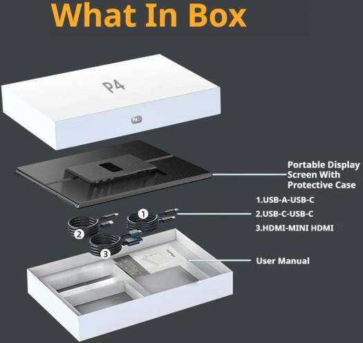 P4 The V2COM P4 Portable Monitor is a high-quality, full-screen solution designed to expand your viewing experience. Its 15.6-inch full HD display, with a resolution of 1920x1080p and brightness of 300 cd/ ㎡ , offers sharp visuals and wide color coverage, perfect for multitasking, gaming, or professional applications. This monitor features a sleek Kevlar-textured finish, combining elegance with long-lasting durability. Equipped with dual USB-C ports, Mini HDMI, and a 3.5mm audio jack, the P4 monitor easily connects to various devices, allowing flexibility for both work and play. Its protective PU leather case also functions as an adjustable stand, keeping your monitor safe while enabling convenient viewing angles. Plus, the integrated PD 100W fast charging capability means your connected devices stay powered throughout the day. Whether you’re enhancing productivity, gaming, or enjoying media on a larger screen, the V2COM P4 Portable Monitor delivers seamless functionality and outstanding visuals in a compact, portable design. SKU: SKU-6D87FB45 Category: Brand: