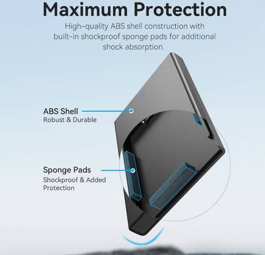 Vention 2.5″ SATA Hard Drive Enclosure, SATA 3.0. Interface, 3.1 Gen2 Type-C Interface, 6TB HDD Easily Read, 6 Gbps Transmission Speed, Nickel-Plated, Anti-Vibration Foam Cushion, Black | KPBB0
