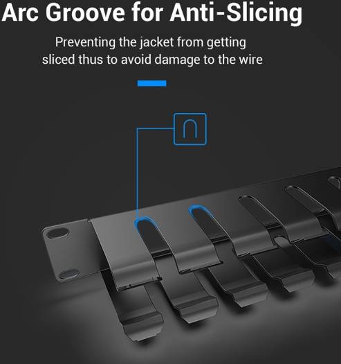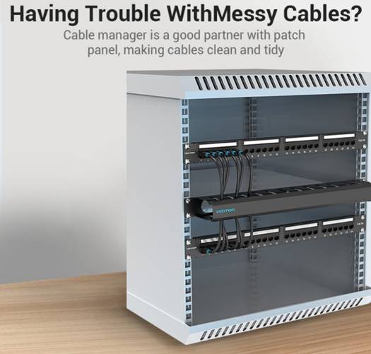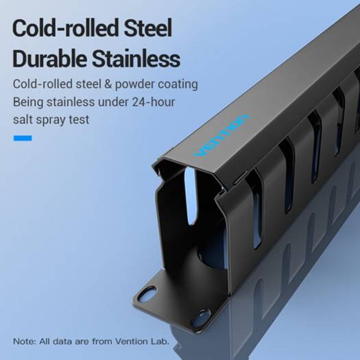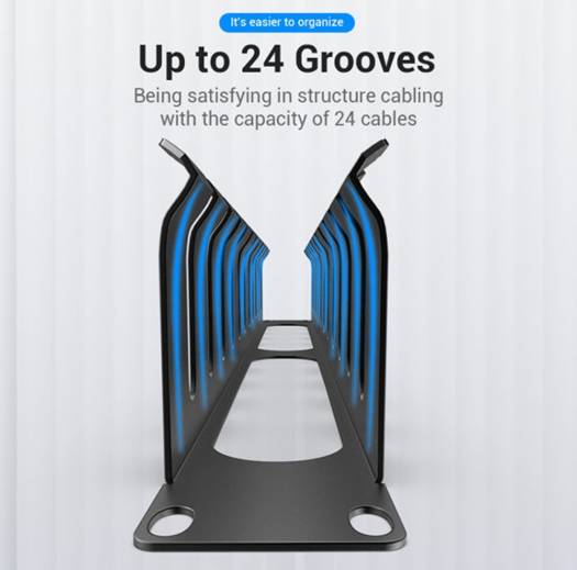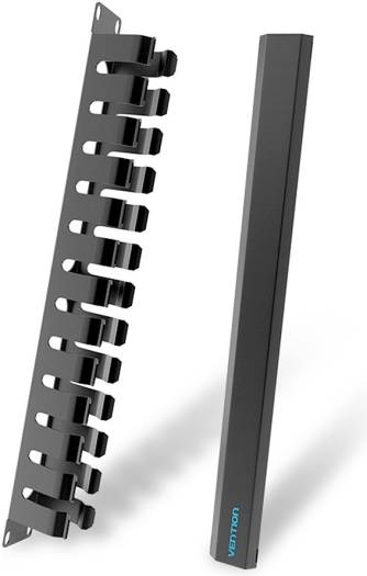 Vention 24 U Cable Manager, Durable and Stainless, Detachable Dust Cover, Make Cable in Order, Anti Slicing Arc Groove, Black | KHAB0