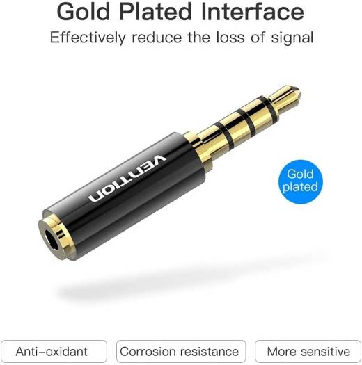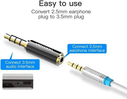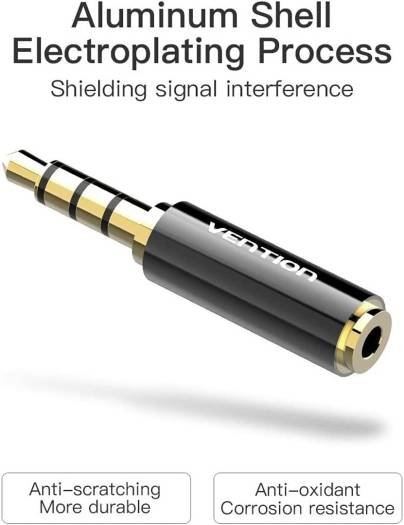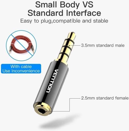 Vention 3.5mm Male to 2.5mm Female Audio Adapter, Gold Plate Interface, Aluminum Shell Electroplating Process, MIC Function Support, Black Metal Type