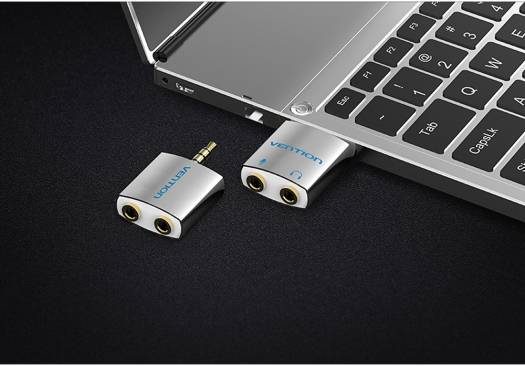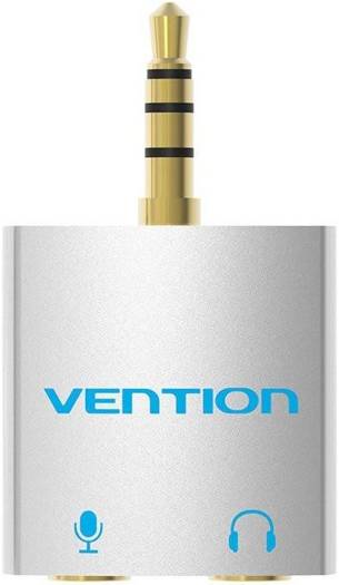 Vention 4 Pole 3.5mm Male to 2×3.5mm Female Audio Splitter Adapter, With Separated Audio & Microphone Port, Silver | BDBW0