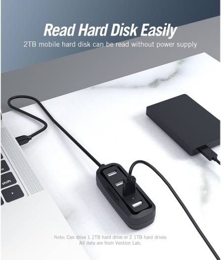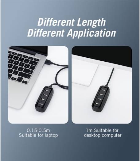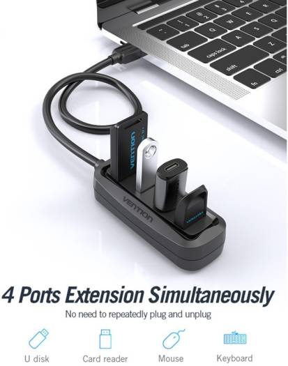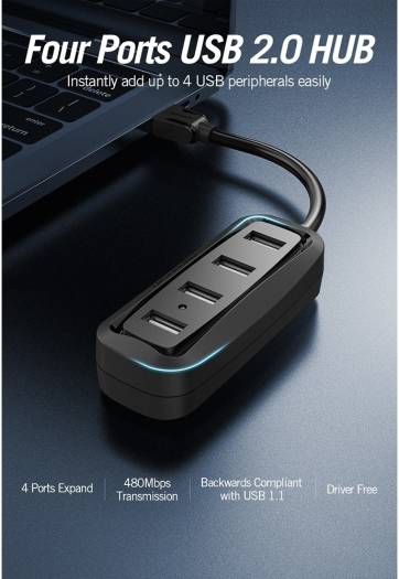 Vention 4 Ports USB2.0 Hub, 4 Port Expansion, 480Mbps High Speed Transmission, Backwards Compliant with USB 1.1, Drive Free, LED Indicator Lamp, 0.15 Meter, Black | VAS-J43-B015