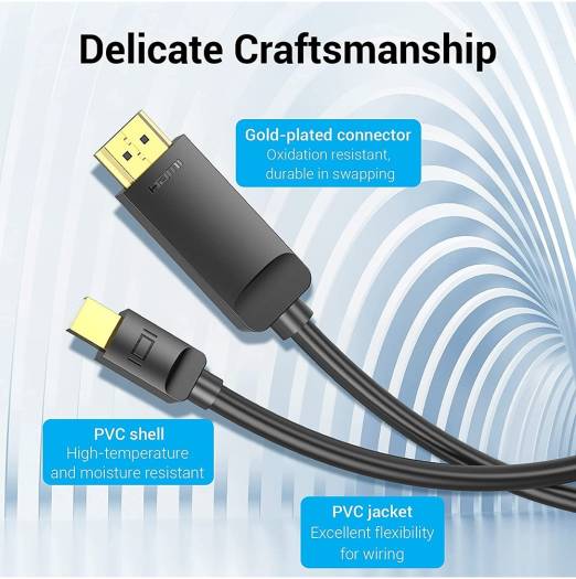Vention 4K Mini DisplayPort to HDMI Cable, 4K 3D Effect, Triple Shielding, Multi Screen Expansion, HD Video Conversion Chip, Compatible with PC / Laptop, TV / Projector, 3 Meter, Black | HAHBI