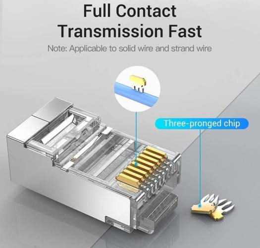 Vention Cat.5E FTP RJ45 Modular Plug, Nickel-Plated Iron Shell, 3 Pronged Gold-Plated Contacts, 50 Pieces, Silver/Transparent | IDAR0-50