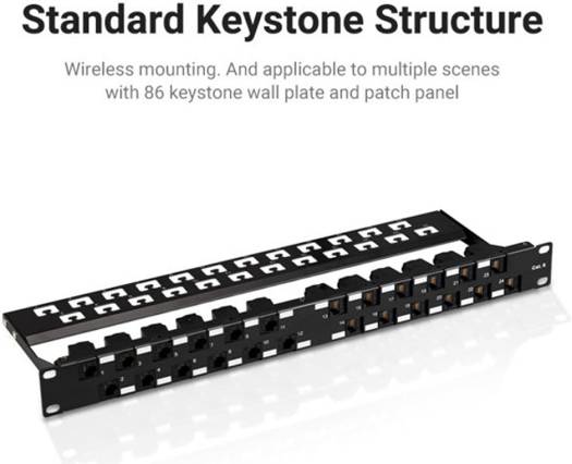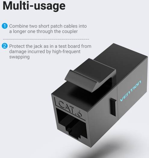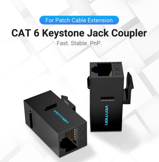 Vention Cat.6 UTP Keystone Jack Coupler, Fast Transmission, Gold-Plated Pins, Thick PCB, 3 Pronged Chip, 5 Pack, Black | IPGB0-5