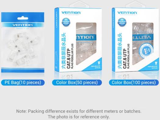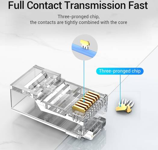 Vention Cat.6 UTP RJ45 Modular Plug, High Speed Network, Durable Rust Free, High Quality PC Material, Three Pronged Chip, 10 Pcs, Transparent | IDDR0-10