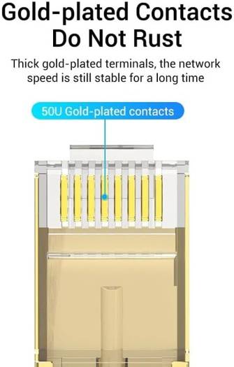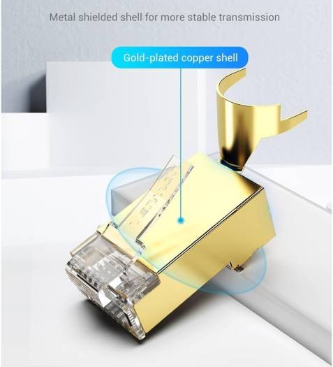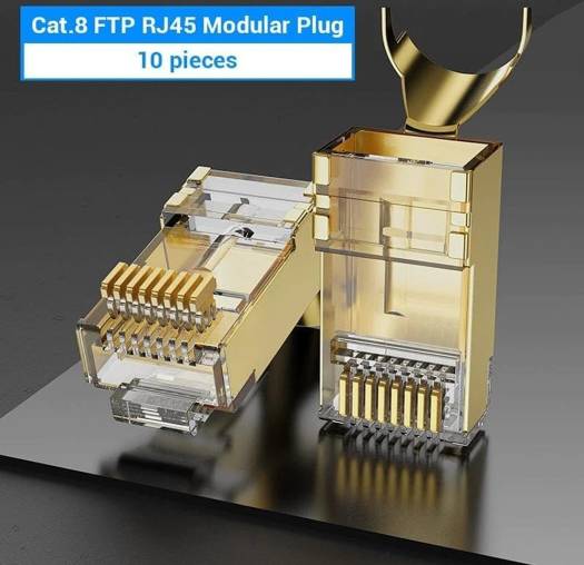 Vention Cat.8 FTP Modular Plug, Dovetail Clip Design, 3 Pronged Gold-Plated 50U Chip, Wire Bracket, 10 Packs, Gold-Plated Copper Shell, Golden/Transparent | IDHR0-10