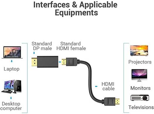 The DP to HDMI Adapter transmits both audio and video from computer with DisplayPort to monitor, HDTV, or projector with HDMI port.NOTE:An HDMI cable is required (sold separately). Supports resolution up to 1080P@60Hz (Full HD) ,display port to HDMI adapter Connect and configure your monitor for an Extended Desktop or Mirrored Displays. Gold-plated connectors provide durability and improve the signal transmission,low profile dongle design, light weight and compact to carry. Package contains: 2 Pieces