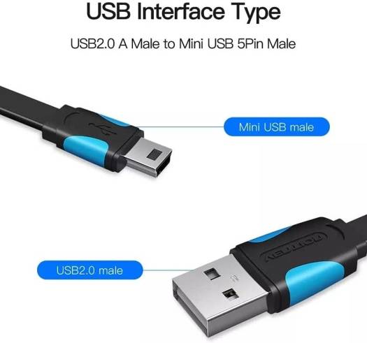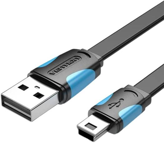 Vention Flat USB2.0 A Male to Mini 5 Pin Male Cable, Fast Charging & Data Transfer 480 Mbps, Nickel-Plated Steel Interface, For Mobile/Digital Camera/HDD/MP3/MP4, 0.5 Meter, Black | VAS-A14-B050