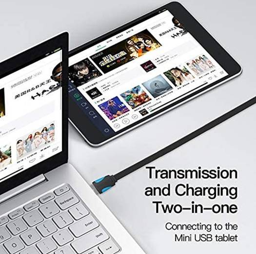 Flat USB 2.0 A to Mini USB PVC Jacket, Nickel-plated steel interface Conductor Material: Oxygen-free copper ROHS, ROSH, FCC, and RoHS Certificated For Cellular Phone Digital Camera HDD MP3 MP4 Player Tablets GPS Fast charging and Data transfer @480 Mbps