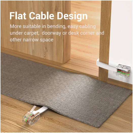 Vention IQB 6P4C Telephone Patch Cable, Male To Male, Trident Gold-Plated FU, Flexible Wiring Of Flat Wire Body, PVC, Pure Copper Conductor Material, 2M Length, White | IQBWH
