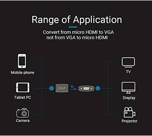 Compact Design – The compact-designed portable VENTION Micro HDMI to VGA adapter connects notebooks, tablets, cameras, camcorders or other devices with Micro HDMI port to a monitor, projector, HDTV, or other devices with VGA port; A VGA cable is required. Superior Stability – Built-in advanced IC chip converts Micro HDMI digital signal to VGA analog signal; It is NOT a bi-directional converter and cannot transmit signals from VGA to Micro HDMI. Ultra HD Resolution – The Micro HDMI male to VGA female converter supports resolutions up to 1920×1080@60Hz (1080p Full HD) including 720p, 1600×1200, 1280×1024. <ul class="a-unord
