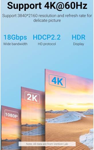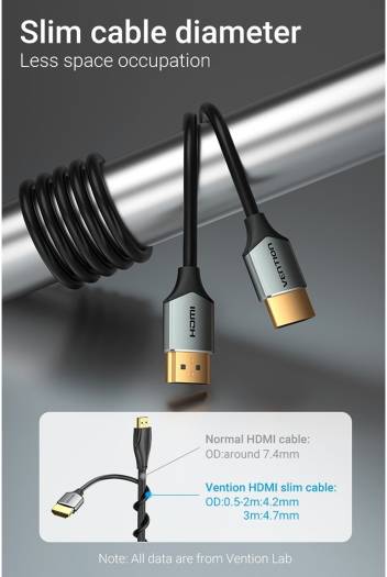 Vention UHD 4K 60Hz Ultra Thin HDMI Cable Thin Cable Portable Design Slim cable diameter, Less space occupation, Normal HDMI cable around 7.4mm. Vention HDMI slim cable Support 4K@60Hz: Support 3840*2160 resolution and refresh rate for a delicate picture, 18Gbps Wide bandwidth. HDCP2.2 HD protocol. HDR display. Audio&Video Synchronization: Share movie feast freely with a large screen Wide Compatibility: Designed for source device with standard HDMI connect to display device. source: Desktop, Laptop, TV box, Gaming Console Display, device: TV, Projector, Monitor. Premium Anti-interference: With pure copper conductor with multiple shielding processes for enhanced anti-interference ability.