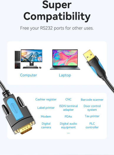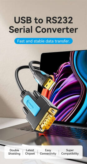 VAS-C02 B300 The Vention VAS-C02 USB to RS232 Serial Converter Cable is a high-quality solution designed to connect devices with RS232 serial interfaces to USB-equipped systems. This converter cable is essential for users who need to link modern computers to legacy devices such as modems, routers, GPS units, barcode scanners, and industrial equipment that rely on RS232 communication.