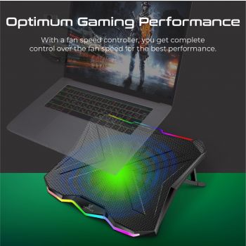 Vertux Glare Quiet RGB Cooling Laptop Stand With Rainbow LED Lights, Fan Speed -800RPM ± 10%, Fan Airflow -47CFM, Fan Noise -22dB, With Multi Height Adjustment | VE.GLARE.NC