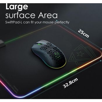 SwiftPad-L provides smooth and accurate mouse control, that results in better gaming performance. The large surface area gives you enough space for quick action movements and the LED lights add a mesmerizing aura to your gaming rig.