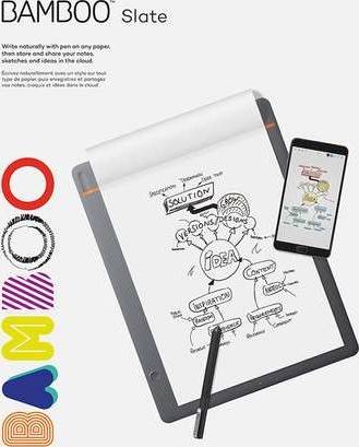 Write naturally with pen on any paper, then store and share your notes and ideas in the cloud. Bamboo Slate is a smartpad that allows you to write naturally with pen on any paper, and with the push of a button convert your handwritten notes into “living” digital files. With the Wacom Inkspace app you can organize, edit, and share your notes and sketches on your iOS or Android Bluetooth® enabled smart phone or tablet. Don’t worry if you’re not near your mobile device – you can store up to 100 pages on your Bamboo Slate and sync later. Do more with your notes and ideas using the Wacom Inkspace app: Enhance notes and sketches by adding strokes, color or highlights with editable digital ink. Export notes as JPG, PNG, PDF or WILL file formats Sync notes with existing cloud services: Inkspace, Dropbox®, Evernote®, and OneNote® Inkspace Basic / Plus Get the essentials with a free Inkspace Basic* subscription: 5 GB storage (6000+ pages of notes) Sync content across smart devices, plus gain access to your content on the Inkspace web portal Unlock more features with a 3-month free subscription to Inkspace Plus*: Convert handwriting to rich text Search your handwritten notes Export in scalable vector file format (SVG) 50 GB storage (60,000+ pages of notes) After the 3-month free subscription to Inkspa