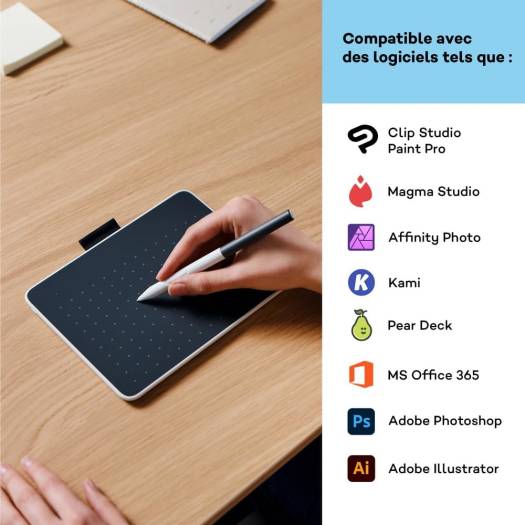 Instantly boost your digital creativity with the compact, versatile Wacom One S tablet. Ultra slim and ultra-portable, this pen tablet connects wirelessly, giving you the freedom to create without the shackles of a cable. Featuring the latest UD stylus technology, it allows you to choose the stylus that will accompany you on your artistic adventures, giving you a perfect mastery of your creations. At just 7.9mm thick, Wacom One S is designed to follow you wherever your inspiration takes you. Experience the freedom to use your favorite operating system since Wacom One S is compatible with Windows, Mac, Android and Chrome OS. Explore endless possibilities, express your unique creativity and immerse yourself in the world of digital art. Unleash your full potential with the Wacom Adventure Program, a program that gives you access to a wide selection of software. Take advantage of the numerous video tutorials, training and exclusive bonus content to boost your talent and find inspiration. The Wacom One S tablet opens the doors to a world of endless artistic possibilities.