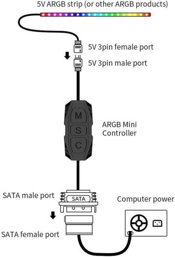 WANGCL 5V 3pin ARGB Controller RGB Fan Controller Light Stripe Controller SATA Power Supply for DIY ARGB Fans ARGB Light Strips Lighting Boards | CP018905