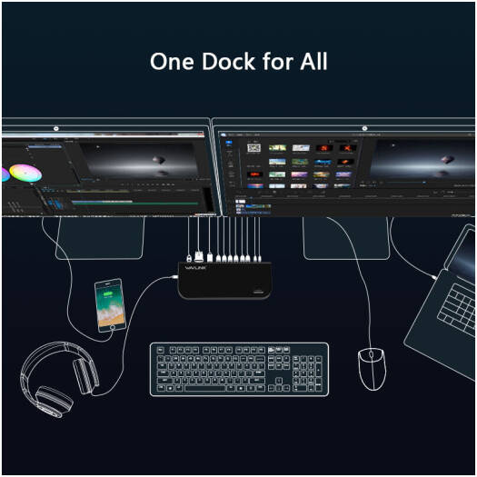Wavlink UG39DK1 Black Dual 2K USB 3.0 Universal Docking Station, Compatible with Windows 10, 8.1, 8, 7, Vista, and Mac OS 10.2 or Above, Speed USB 3.0 (5 Gbps), Black | WL-UG39DK1