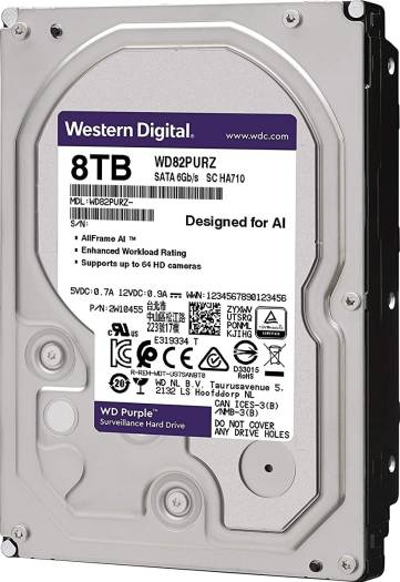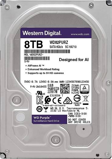 WD Purple 8TB Surveillance Internal Hard Drive – 7200 RPM Class, SATA 6 GB/S, 256 MB Cache, 3.5″ | WD82PURZ