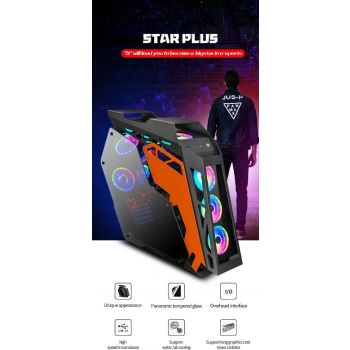 WJCoolMan Star Plus Special Edition 8 Fans ARGB Gaming Case Support water cooling and air cooling. Double lock anti-theft Support long graphics card and tower radiator Clear View of PC Gaming: High quality two 5 millimeters thick tempered glass window panels on left and right Two 5 millimeter tempered glass panels: Thicker and more scratch resistant when compared to standard acrylic Dismantlable Modular Design: Clear window design permits users to fully display and admire all components of the liquid cooling systems. Show off your dedicated set in the subtlest manner