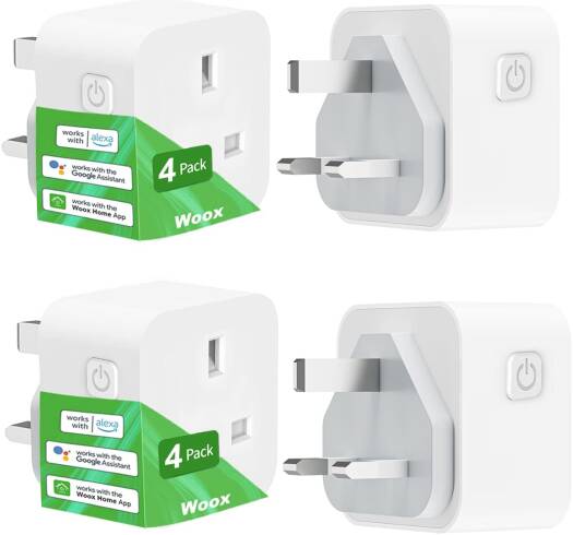 Woox R4785 Smart Indoor Plug UK, No Hub Required, Remote Access, Scheduling, Away Mode, Voice Control, Kids Safety Lock Design, 4 Pack, White | R4785