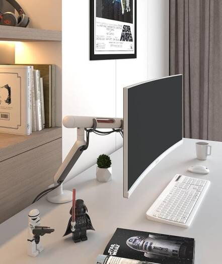 Workspace Gaming Monitor Arm Mount White, Cable Management, 180/360 Flexible Joint, 21″ Extension, VESA 75mm/100mm, 18″-28″ Monitor Compatibility, 9.1kg Weight Capacity, Starwars Light Saber Inspired