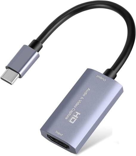 X spring Video Capture Card Device, 4k Video Capture Card, Audio Capture Card for Game Capture, Game Capture Card with USB C Adapter, HDMI to USB C Capture Card for Mac OS Teaching Recording, Grey