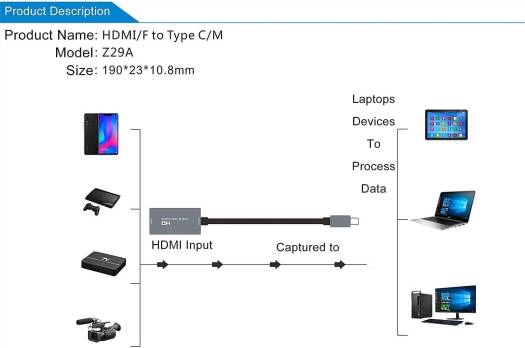 X spring Video Capture Card Device, 4k Video Capture Card, Audio Capture Card for Game Capture, Game Capture Card with USB C Adapter, HDMI to USB C Ca