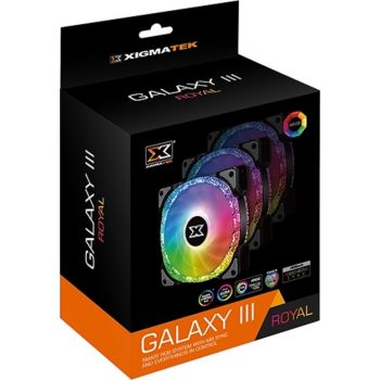 Xigmatek Galaxy III Royal Addressable RGB LED Case Fans, Control Hub & Remote Control, 120mm (3x BR120 Fans), 42.68 CFM Airflow, Black, 3 Pack | EN461