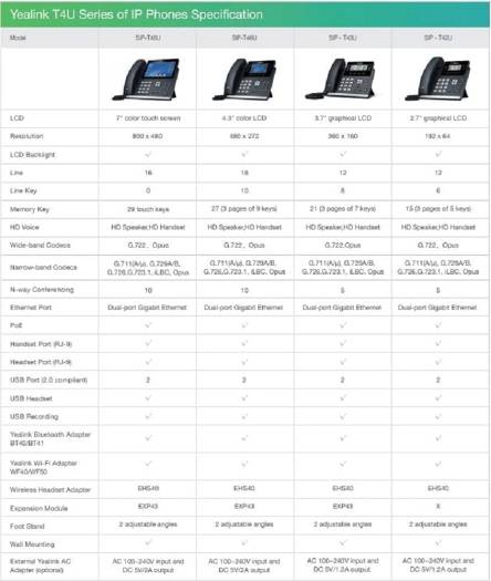 Yealink SIP- T43U Feature-rich SIP Phone for Workers of Co-working Space The SIP-T43U IP phone is a feature-rich business tool for excellent communications and extended functionality. It is a 12-line IP phone that comes with a 3.7-inch large black-and-white screen and the EXP43 support. United Yealink Optima HD Voice technology and wideband codec of Opus, the T43U awards you the superb audio quality and crystal-clear voice communications. The phone feels quicker and more responsive when performing call features. Moreover, the T43U puts dual USB ports in a phone that makes Bluetooth, Wi-Fi, USB headset and USB recording come true, and you can use any two of them freely according to your needs. The Yealink new T4U series offers the same elegant appearance as the T4 line, but with improvements for greater interoperability and better collaboration. Specifications Display