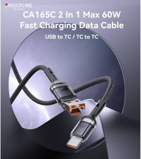 Yesido 2 in 1, 60W Fast Charging High-density Braided Body USB/Type-C To Type-C Data Cable, Up To 480Mbps Speed, Black | CA165C