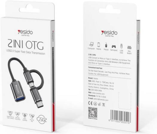 GS02 GS02 Cotton Braided Cable 2 in 1 Widely Compatible Anti-stretch 10CM OTG Adapter Type-C/Micro TO USB. Specifications Brand Yesido Item OTG Adapter