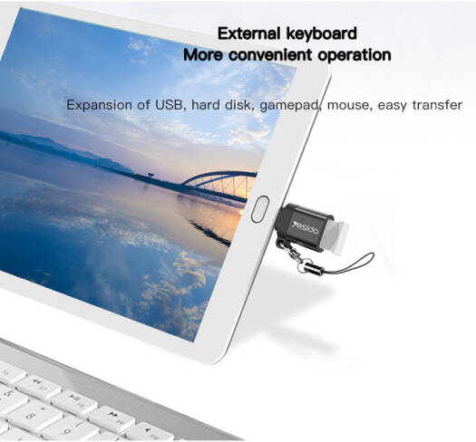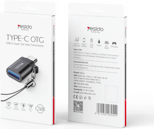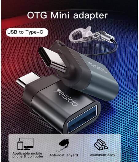 Yesido GS06 Type-C to USB-A OTG Adapter, Power and Data Transmission, Plug-and-Play, Built-In Protection, High-Speed Data Transfer, PC + Aluminum Alloy Material, Landyard Included, Black | GS06