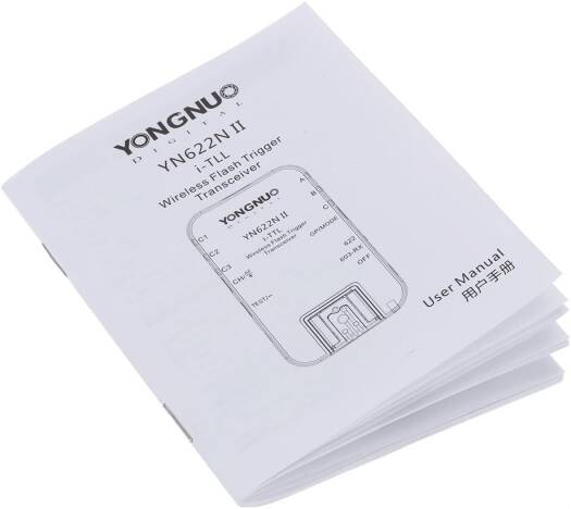 Compatible camera list: for Nikon D70, D70S, D80, D90, D200, D300, D300S, D600series, D700, D800series, D3000series, D5000series, D7000series Compatible i-TTL flash list: for YongNuo YN 465, YN467, YN468, YN565, YN568 (for Nikon series) for Nikon SB-600, SB-700, SB-800, SB-900, SB-910 List of the master unit that supports the master control mode on the transmitter: SB-700, SB-900, SB-910 The following functions refer to the camera and the flash: FVL, BKT function Modeling flash Red-eye reduction flash ZoomSpecifications: System type: Digital FSK 2.4GHz wireless transceiver Distance: 100m Channel: 7 Groups: 3 groups(622), 6 groups(603-RX) Flash mode: i-TTL, Manual flash Sync mode: front-curtain, rear-curtain, high speed sync Max Sync Speed: up to 1/8000s Input: Hotshoe(TTL, main contact) Output: Hotshoe / PC port Battery: 2 * AA battery (Not included)-for one trigger Item Size: 9 * 5 * 4cm / 3.5 * 2.0 * 1.6in Item Weight: 93g / 3.3oz Package size: 14.8 * 12 * 5.5cm / 5.8 * 4.7 * 2.2in Package weight: 268g / 9.4ozNote: The battery is not included.Package List: 2 * Transceiver 1 * User Manual(English & Chinese)