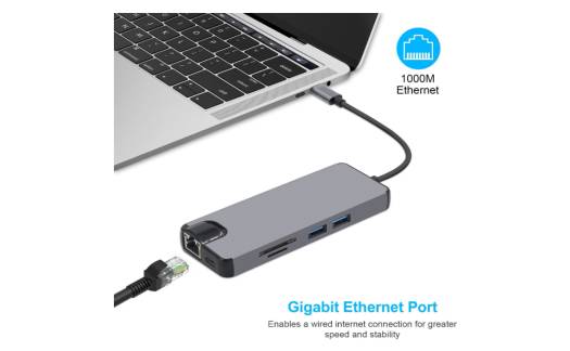 Zonixplay Type-C to HDMI 8 in 1 Adapter, Store Data Up To 5Gbp/s Speed, USB C to RJ45 Gigabit Ethernet LAN, Gray | ZP008
