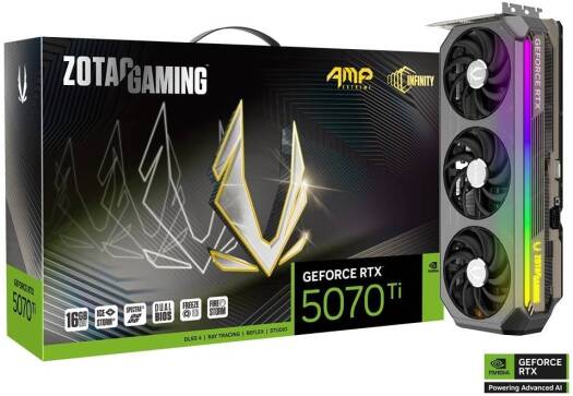 GAMING GeForce RTX 5070 Ti AMP Extreme INFINITY GeForce RTX 50 Series – Game Changer! Powered by NVIDIA Blackwell, GeForce RTX 50 Series GPUs bring game-changing capabilities to gamers and creators. Equipped with a massive level of AI horsepower, the RTX 50 Series enables new experiences and next-level graphics fidelity. Multiply performance with NVIDIA DLSS 4, generate images at unprecedented speed, and unleash your creativity with NVIDIA Studio.